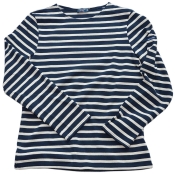 Gestreiftes Bretagne-Shirt mit Rundhals-Ausschnitt und langen Ärmeln. Der Schnitt ist körperbetont.